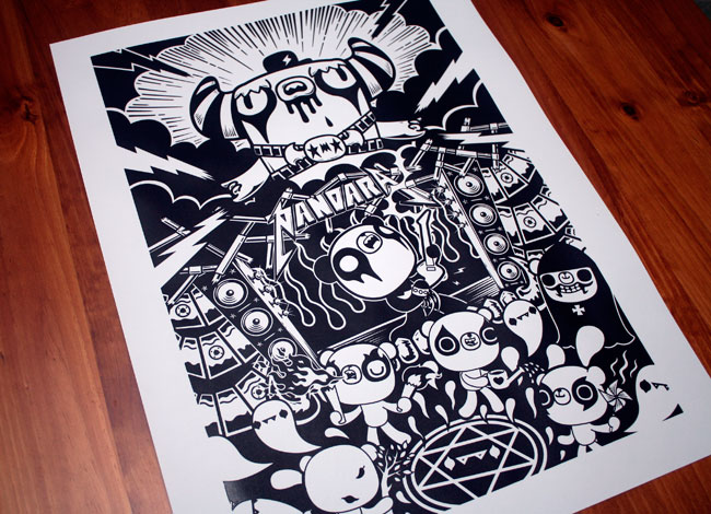 screen printing day 2… shift the press down to garage, this thing can get real nasty! after some trail and errors, prints starting to come out like how they should be! i like the hand print look of it, some minor imperfection makes each print unique! ;-)