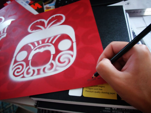 first piece in the new year is a revisit of a design i did last year, adding more depth to it, i decide to design a kowhaiwhai pattern as backdrop, its more challenging than i expected, sometimes simple things can be trickier than you think, just like open pickle jars…
