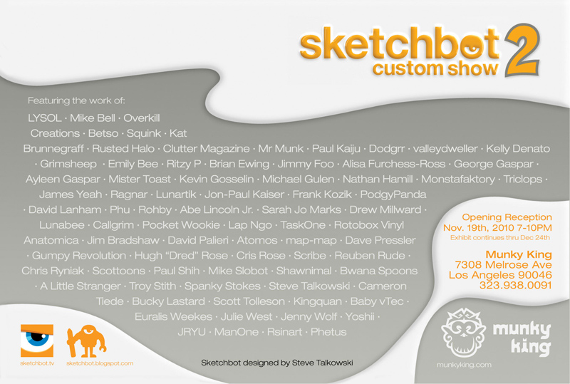 Don’t miss this show if you are in LA, its your chance to grab some one off custom art toys! (or blank sketchbot designed by Steve Talkowski)