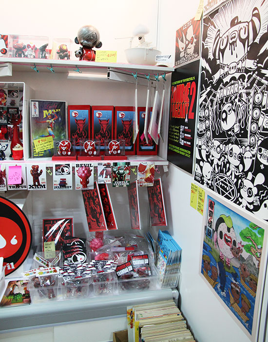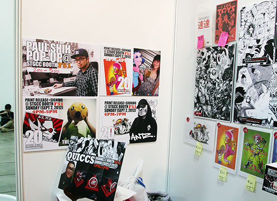 a closer look at the booth, with loads of toys and prints + artists appearance info on another wall!