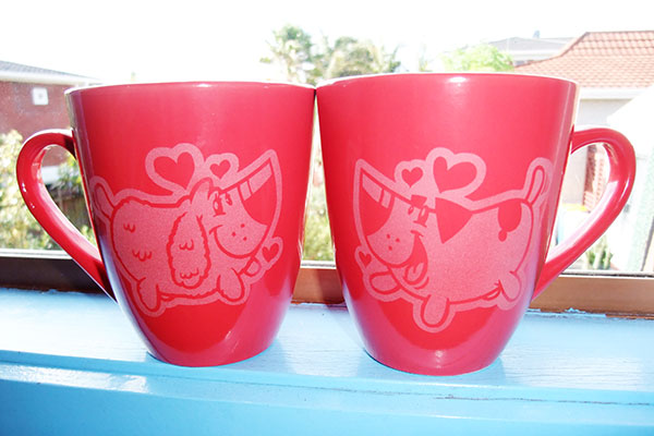 above are custom sandblasted mugs by Lemon One, a very clever graffiti artist/designer based in germany, his graffiti and lettering has always been fresh & cute!